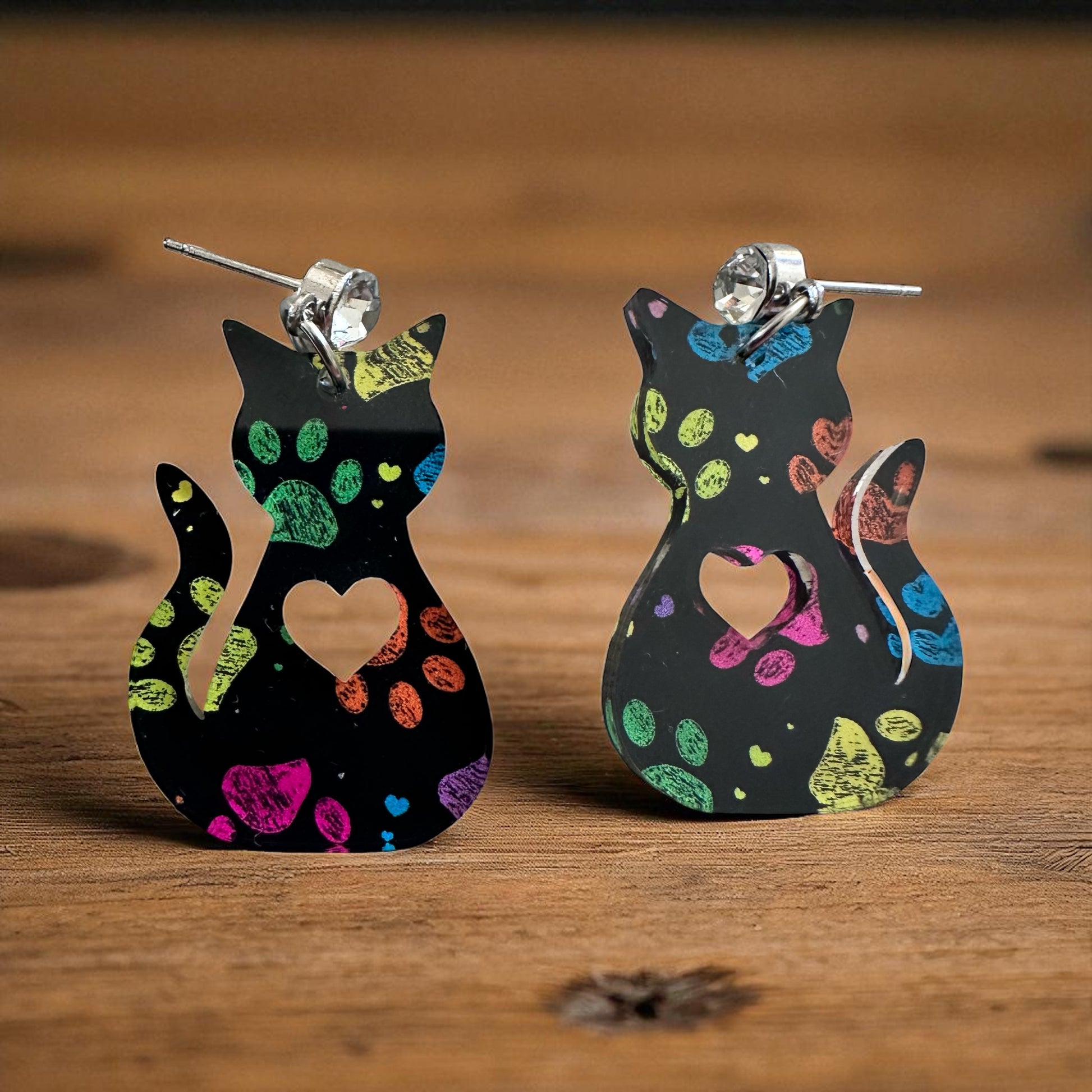 Overall, these earrings combine a cute cat theme with rainbow accents, making them perfect for animal lovers who enjoy bold and fun accessories.