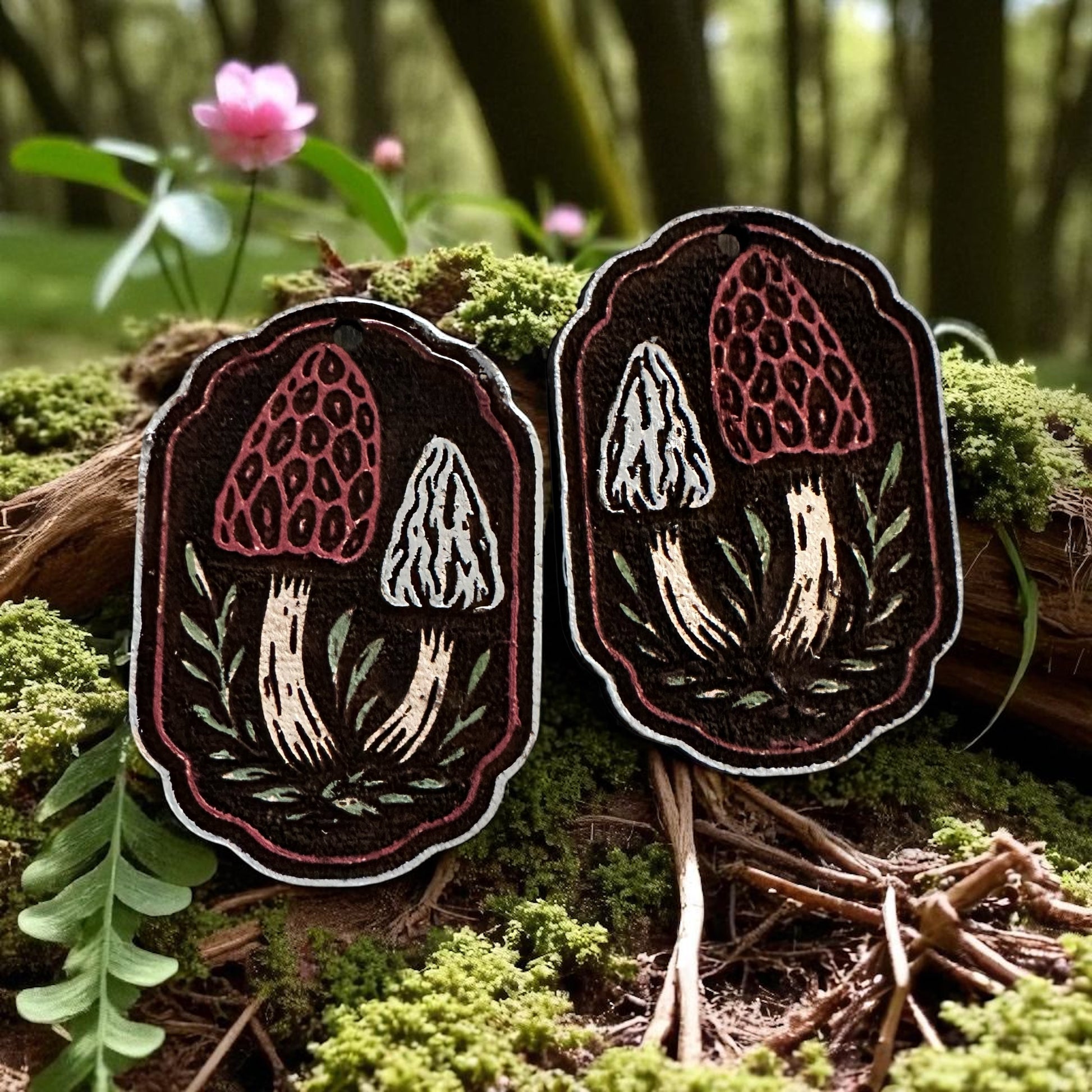 These earrings are hand painted in woodsy colors to enhance their natural, forest-inspired theme. The craftsmanship and detailing suggest these are artisan-made pieces, ideal for nature lovers or those drawn to whimsical, earthy accessories.