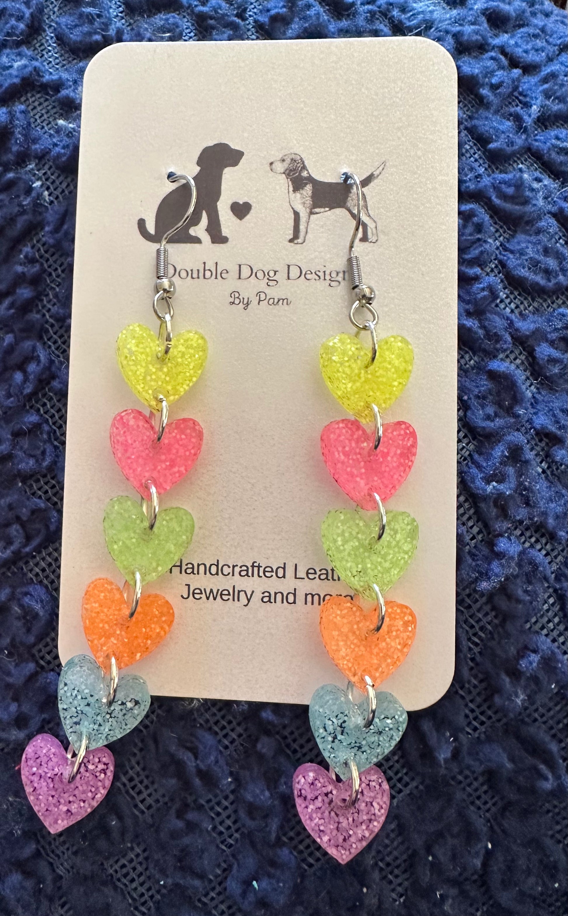 These acrylic hearts are beautiful neon rainbow colors. They are 3in long
