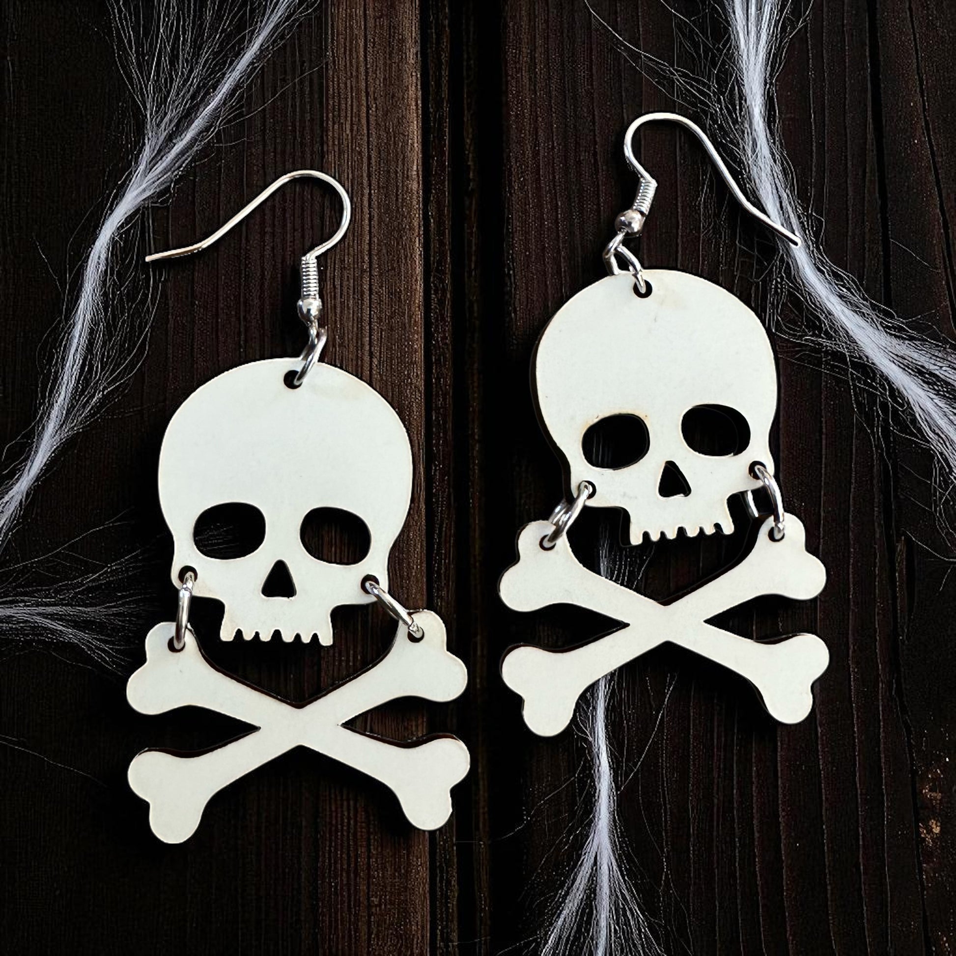 These acrylic earrings are striking, Halloween-ready accessories featuring a skull and crossbones. Perfect for a gothic, punk, or Halloween look, these earrings channel classic pirate and spooky vibes.Overall, they’re fun statement pieces that add a playful but edgy touch to an outfit, ideal for costumes or anyone who loves alternative fashion.
